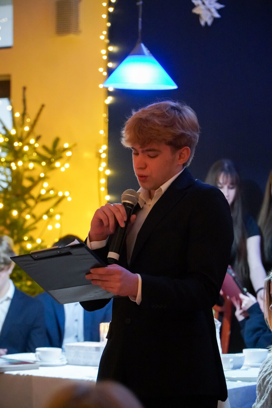 Nasza wspaniała młodzież pod kierunkiem p. Ewy Chmielewskiej, p. Małgorzaty Piwek, p. Katarzyny Pyczot przygotowała wzruszający program słowno- muzyczny poświęcony „stołowi”, jego miejscu w naszej kulturze i tradycji. Motywem przewodnim był „stół wigilijny”, ponieważ na początku stycznia doświadczamy jeszcze nastrojowości Bożego Narodzenia. Na tle prezentacji multimedialnej przygotowanej przez p. Dorotę Wiśniewską goście mogli wzruszać się, (podobno nawet ocierali łzy) słuchając fragmentów „Chłopów”, listów więźniów Katynia, kolęd, pastorałek etc.